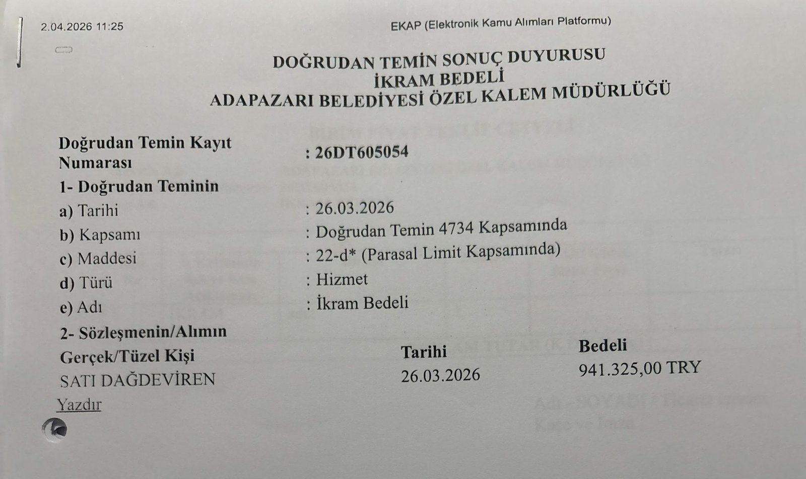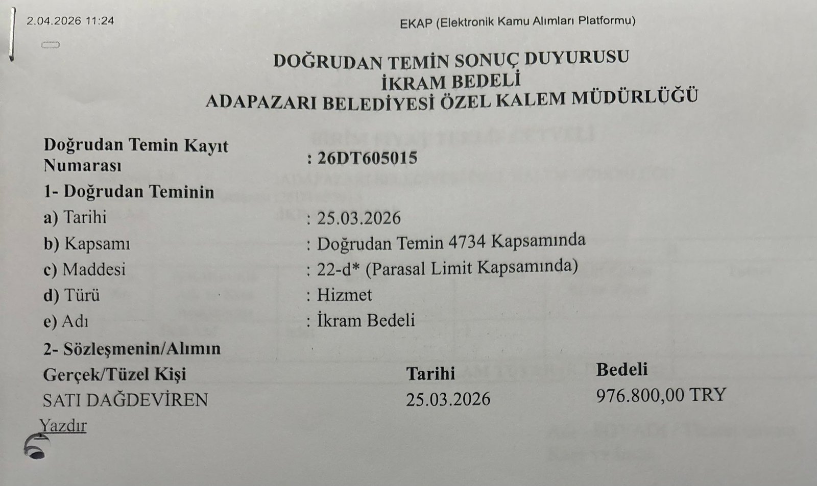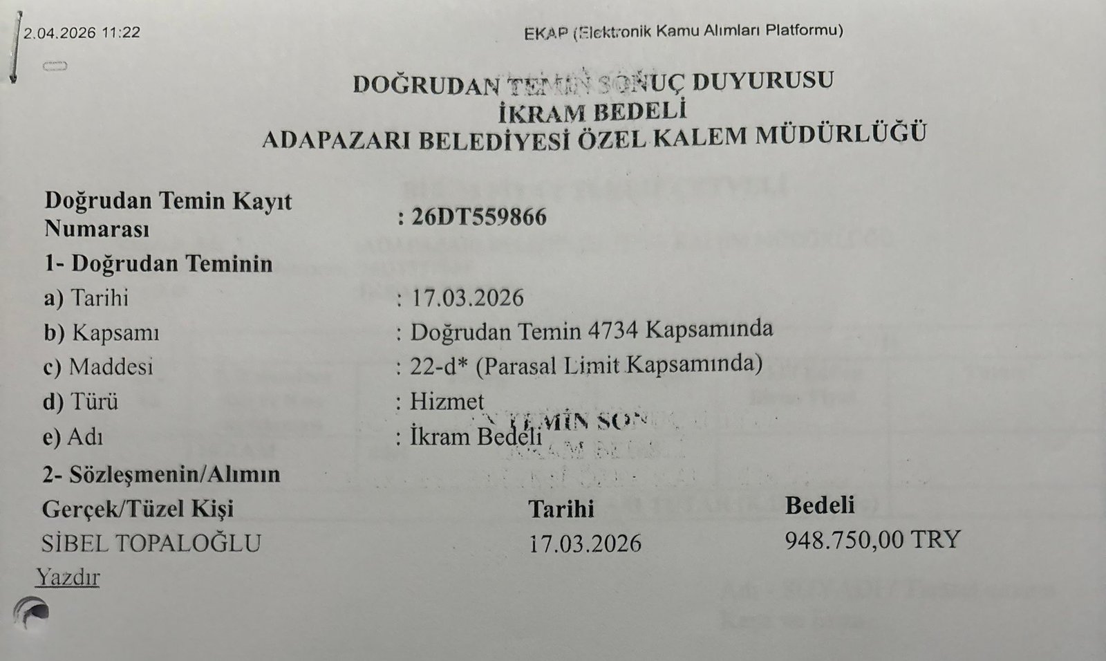 CHP Adapazarı İlçe Başkanı Sabri Anıl Özkan’ın paylaştığı belgelere göre, iki hafta gibi kısa bir süre içinde toplamda milyonlarca lirayı bulan dört ayrı ödeme gerçekleştirildiği öne sürüldü.