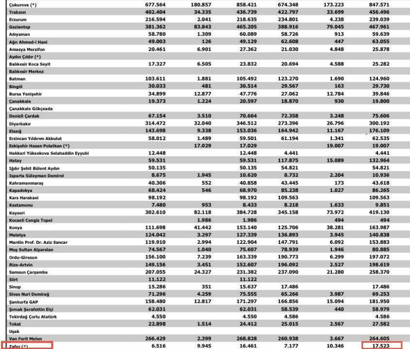 Zafer Havalimanı’nda, 2026’nın 2.ayında, iç ve dış hatlarda⬇️