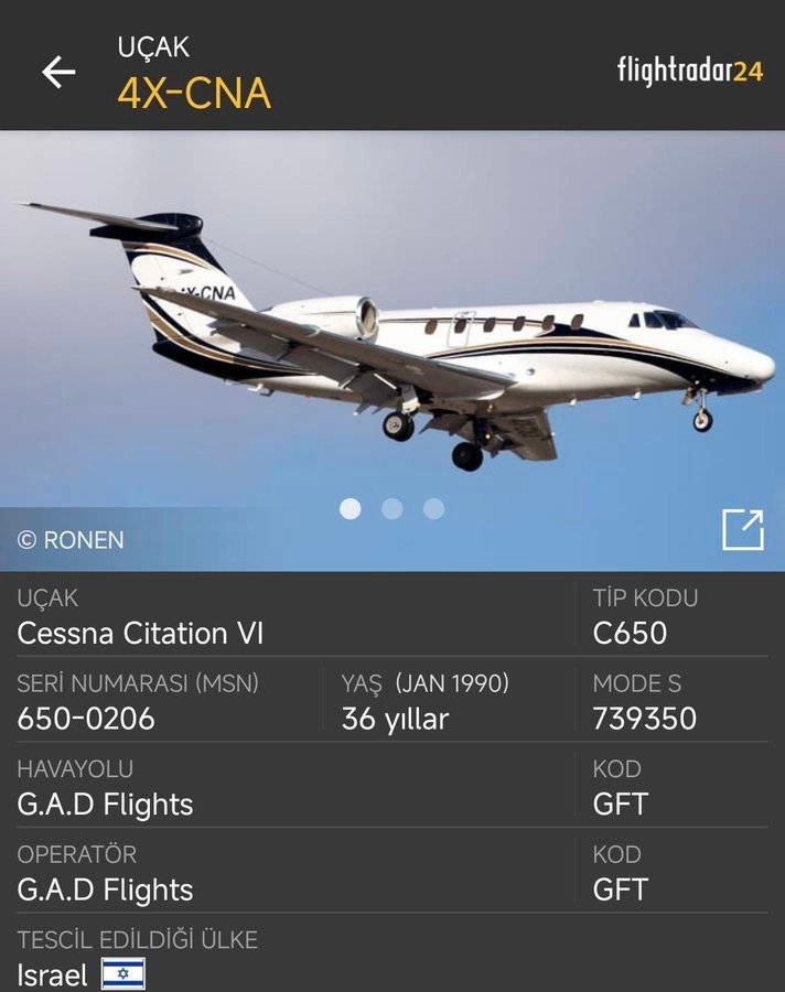 Park halinde bulunduğu aprona, şüpheli bir İsrail jetinin giriş yaptığını ve 1 saat 41 dakika boyunca orada kaldığını, ardından Tel-Aviv’e hareket ettiğini tespit ettik.